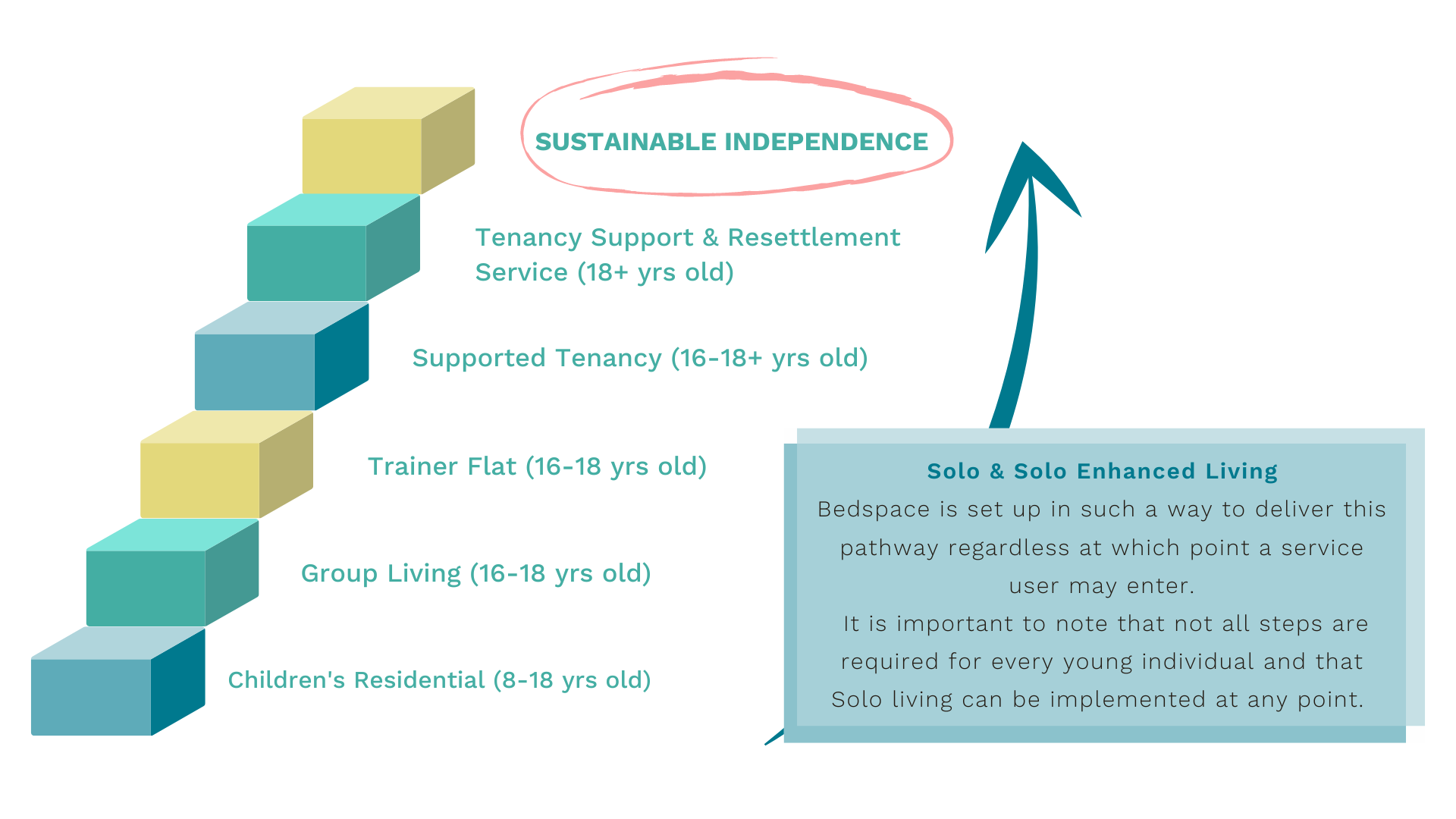 We are proud to offer a full pathway of services tailored to each person that we care for and support, from children’s residential, 16+ residential (group living and trainer flats) and outreach support, taking people on the journey to sustainable independence. The people we care for and support love this approach as they are able to stay with us throughout their journey, giving them consistency in their lives.